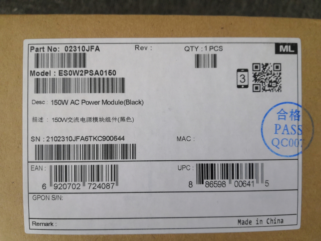 نموذج: | ES0W2PSA0150 | رقم الجزء: | 02310JFA |